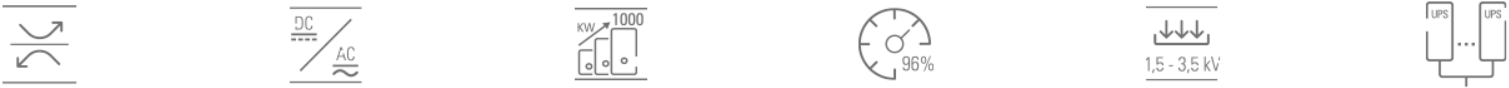 1500–3000 V DC bemeneti feszültségtartományt kezel, stabil 400 V AC kimenetet biztosít, és skálázható, akár 1 MW teljesítményt nyújt. Ideális állandó hálózatstabilizálási feladatokra, valamint nagy ipari és kereskedelmi alkalmazásokra, ahol DC→AC átalakításra és AC→DC visszatáplálásra egyaránt szükség van. A berendezés kiemelkedő teljesítményt és bizonyított megbízhatóságot nyújt, növeli a hatékonyságot, és megfelel a jövő energiaigényeinek – az energiatároló rendszerektől az elektromos járművekig és a megújuló energiás rendszerekig.