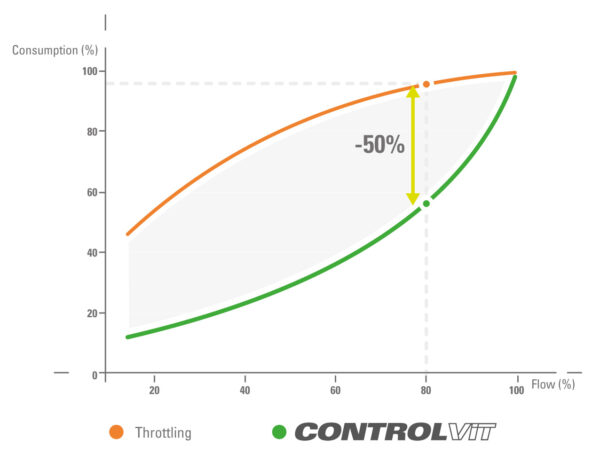 Fejlett, szenzor nélküli vektoros vezérlése – amely két különböző algoritmust alkalmaz az elvárt teljesítmény függvényében – nagyon alacsony fordulatszámon is nagy nyomatékot biztosít. Ezen felül automatikus energiatakarékos funkcióval rendelkezik, amely jelentős fogyasztáscsökkenést eredményez, különösen szellőztetési, vízkezelési és öntözési alkalmazásokban.