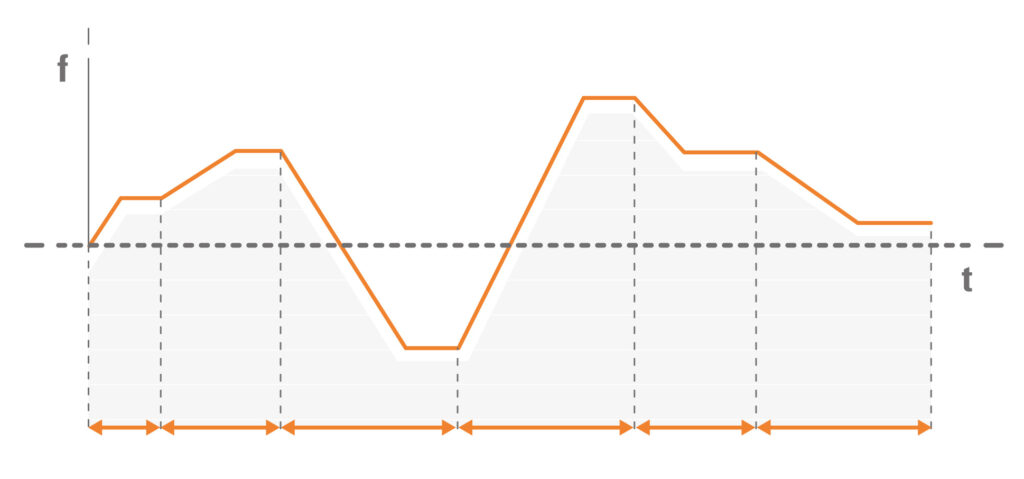 Hirtelen terhelésváltozás esetén, akár 0,5 Hz-es motorfordulatszámon is, a sebesség állandó marad, és a rendszer képes a teljes terheléshez szükséges nyomaték biztosítására.