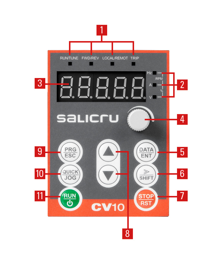 A Salicru Controlvit CV10 frekvenciaváltó-sorozat rendkívül versenyképes megoldást kínál az alkalmazások széles köréhez. Egyfázisú betáplálású, kis teljesítményű motorokhoz tervezett készülék, amely igen gazdag hardverfelszereltséggel rendelkezik, többek között: levehető kezelőpanel beépített potenciométerrel, dinamikus fékezőegység, RS-485 Modbus kommunikáció, valamint természetes hűtés a 0,75 kW-ig terjedő teljesítménytartományban.