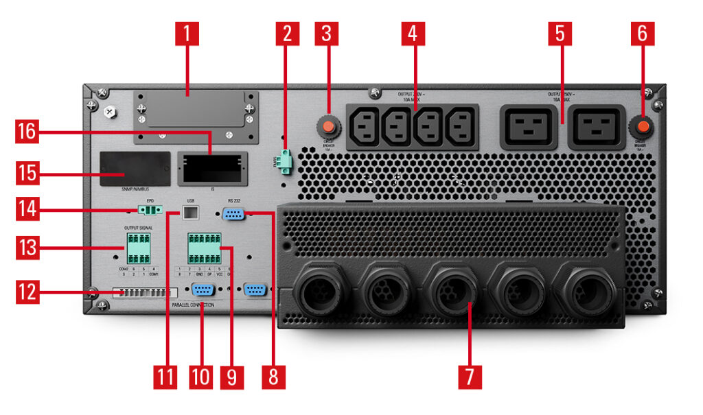 RS232 és USB-HID kommunikációs interfészek       Smart slot SNMP-hez és                         relékártyához